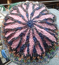 with a cozy ribbed brim and flows into a rich, textured body worked seamlessly in