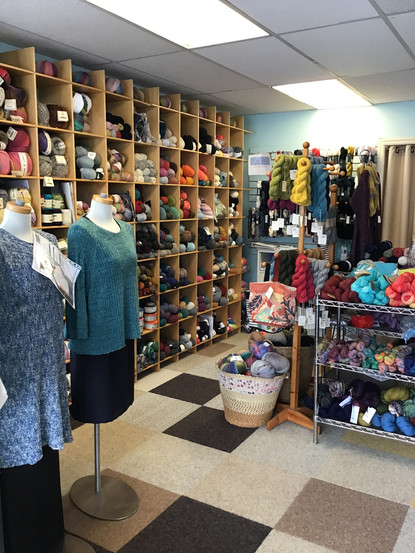 We are a cozy space to come sit and knit (or crochet) for anyone of any skill level. Our welcoming staff is always willing to help, either with a twisted stitch or a yarn recommendation for your project. We also carry a wide variety of yarn, from laceweight to ultra bulky, from traditional fiber animals to the not so traditional.